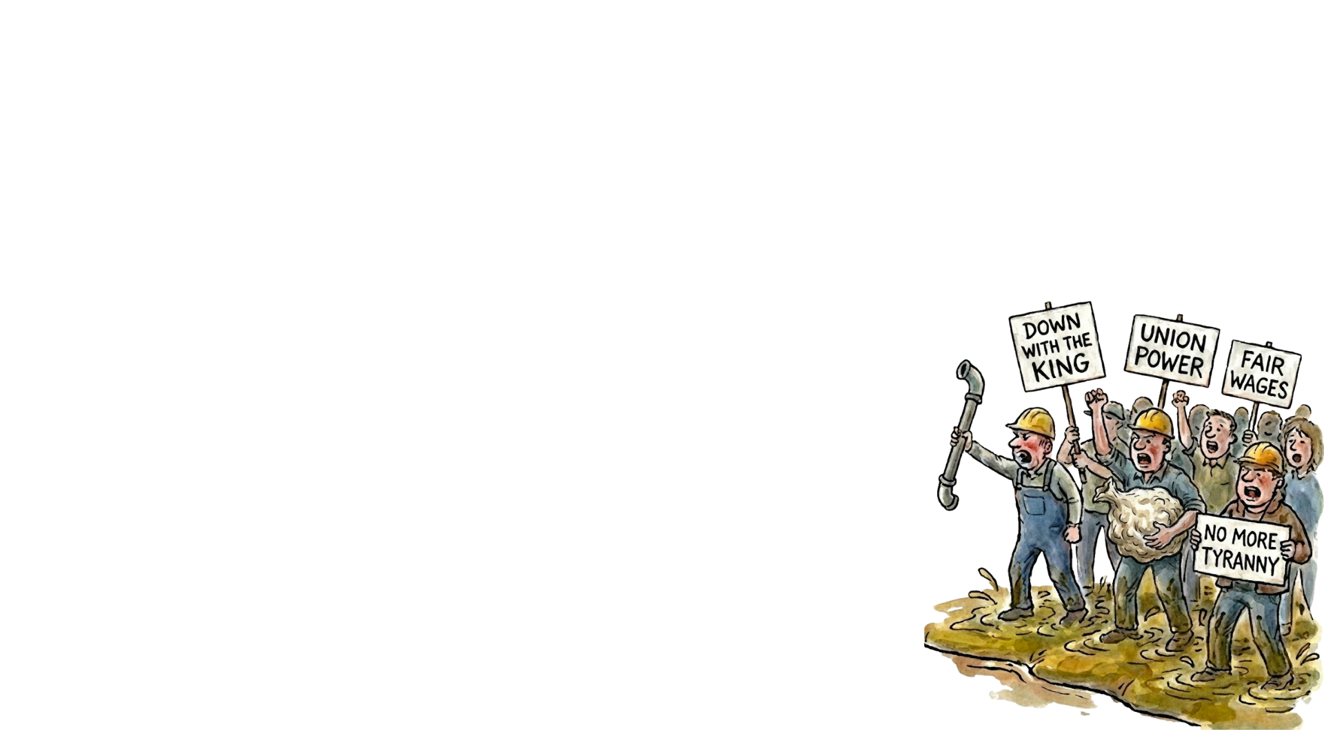 Visual comparison of Crohn's disease and ulcerative colitis — King Krone, the union workers, cancer crab, and the skipping kid.